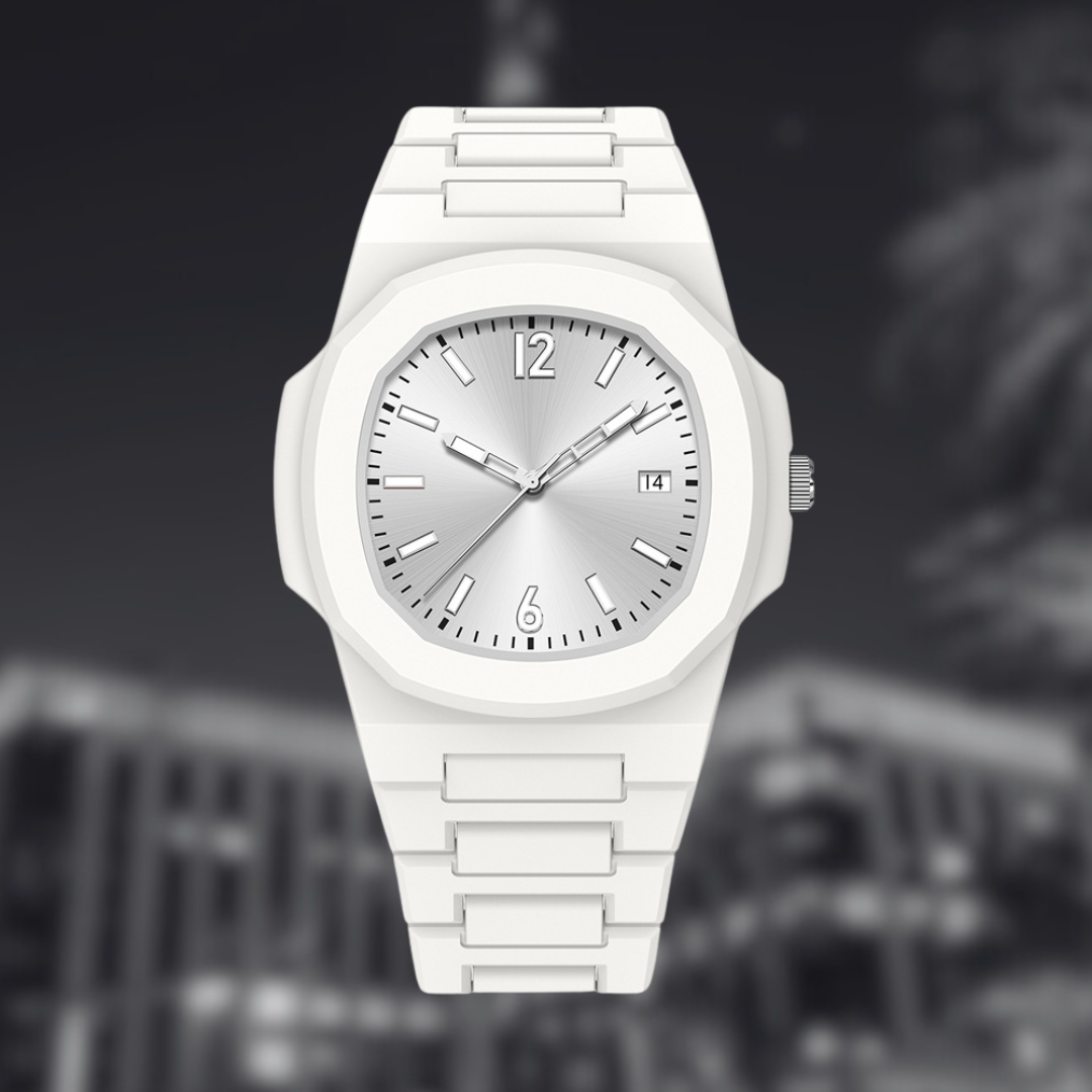 Case & Strap: Matte White Polycarbonate with soft-touch finish